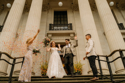We chose to ‘make it legal’ in the Old Marylebone Town Hall, shortly after our elopement in Bali. We asked our closest, immediate family members to join us, as we stood in the Pimlico room, signed our legal contract and walked out hand in hand to a confetti toss!